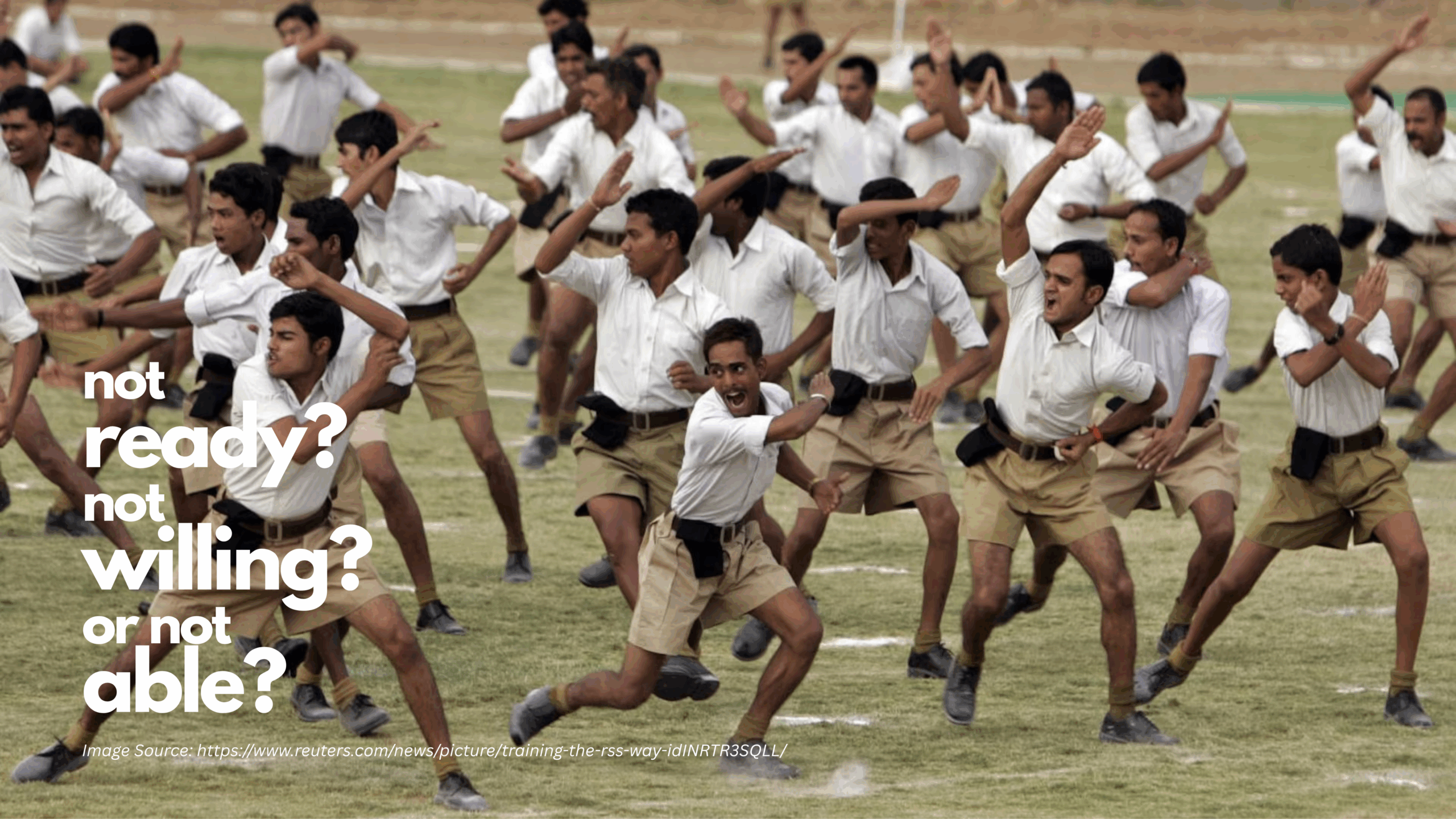 Are these lakhs of young swayamsevaks, who claim to love the motherland more than anyone else, who say they are ready to lay down their lives, who train in drill formations and salute saffron flags, are they simply not willing to join the actual armed forces? Or are they unable to meet the stringent tests, physical, mental, emotional, and intellectual, that the highly professional Indian military sets before it admits anyone to its ranks? Which is it, then? A lack of courage, or a lack of calibre?