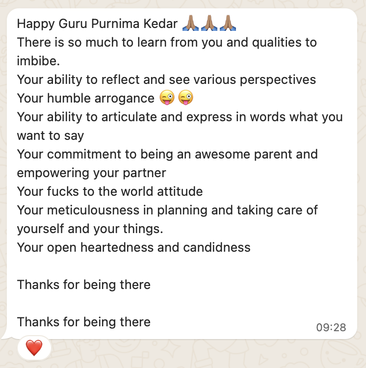 It was Guru Purnima, a day I usually observe more out of cultural habit than belief, being the atheist and rationalist I am. And over the years, I’ve grown used to messages from people who say they’ve learnt something from me. I’m 53. I talk a lot. It’s not entirely surprising.